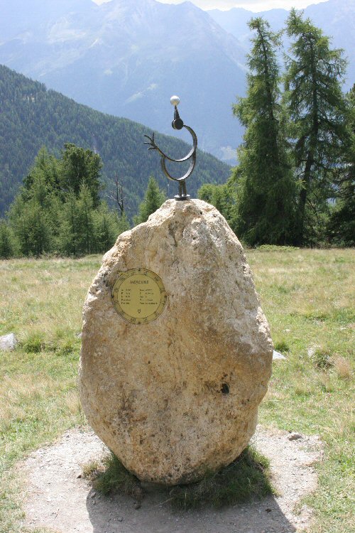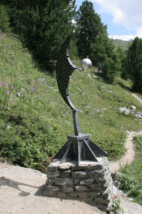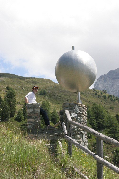 Anderntags ging es wieder auf die Alp hoch. Das Zündkabel hatte unter den Füssen unachtsamer Zuschauer gelitten und bedurfte der "Zuwendung eines Lötkolbens". Nachdem wir uns auch noch das Observatorium angesehen hatten und der Magen gut gefüllt war, gings dann an den Abstieg "per pedes" Richtung St. Luc. St. Luc hat einen Planetenweg eingerichtet, auf welchem die Planeten im korrekten Grössen- und Abstandsverhältnis zueinander abzuwandern sind. Ein wirklich empfehlenswerter Wanderweg!