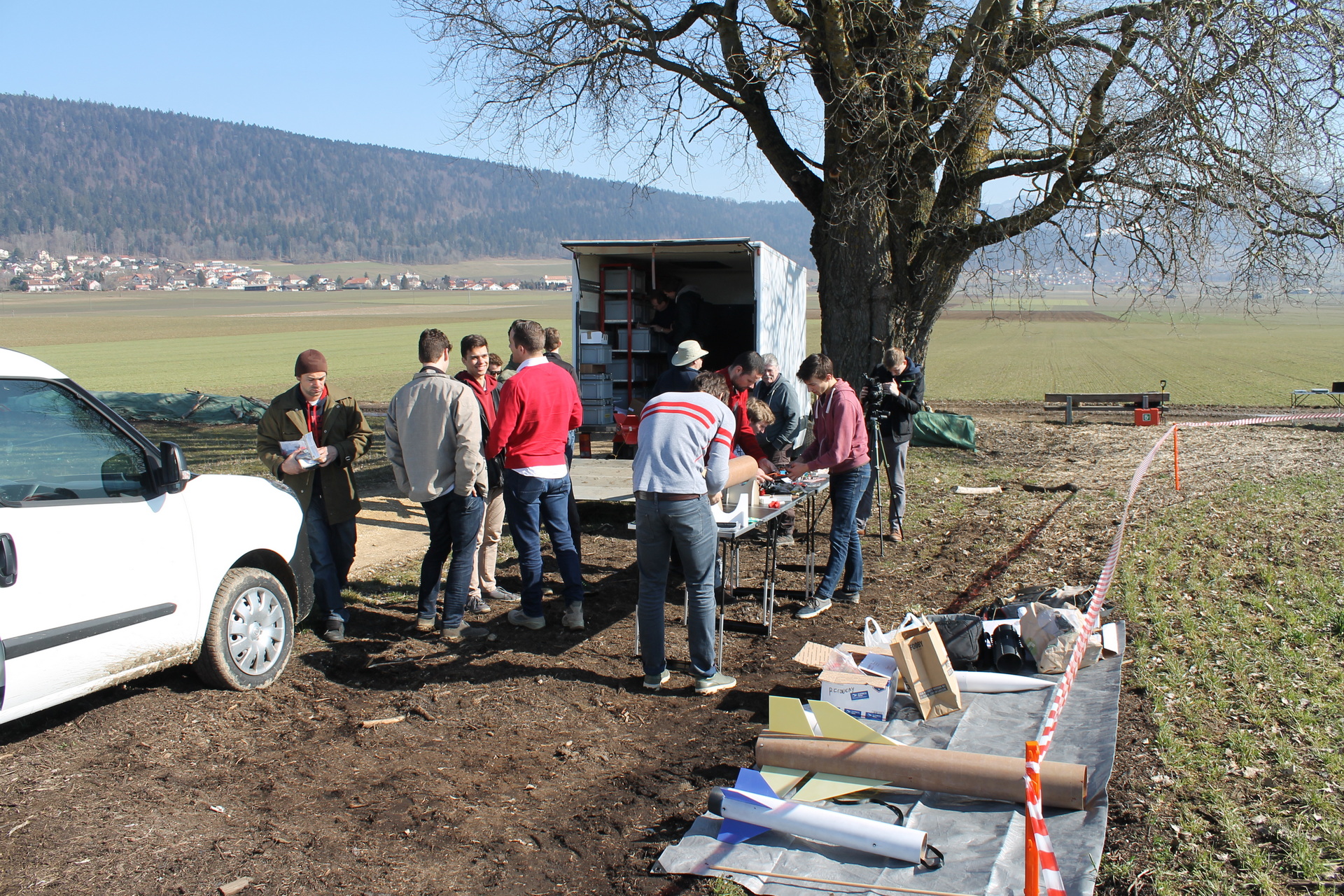 Bei besten Bedingungen trafen sich am vergangenen Wochenende die Mitglieder der ARGOS, darunter auch die Studenten der beiden «Spaceport America» Teilnehmerteams der EPFL und ETH Zürich, im Val-de-Ruz, um ihre Raketen zu starten. Vor allem konnte das Team der ETH Zürich ihre Testrakete «Tell» erfolgreich starten und somit wichtige Erkenntnisse mitnehmen. Das Team der EPFL wurde leider nicht rechtzeitig mit Ihrer «Matterhorn» fertig und sucht nun nach anderen Möglichkeiten für einen Testflug. Getestet wurde aber ihr wunderschöner, selbst gemachter Fallschirm, rot mit weissem Schweizer Kreuz, welcher sich allerdings nicht vollständig entfaltete. |